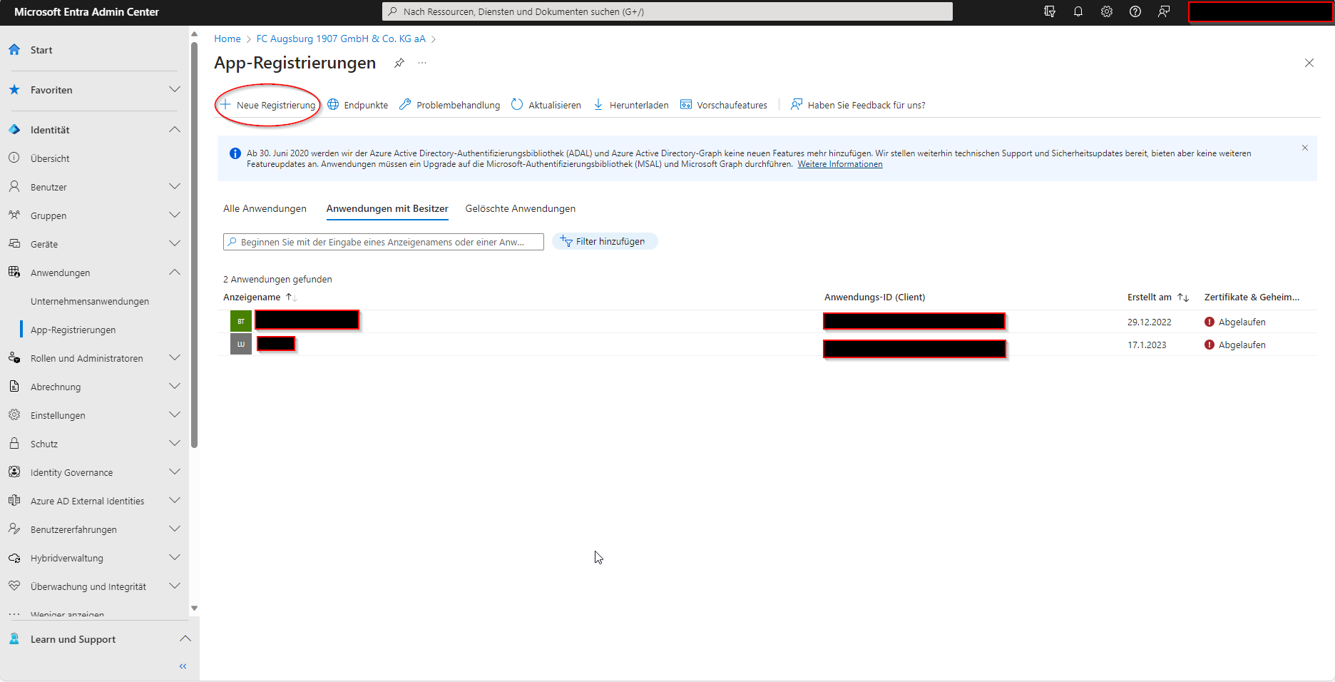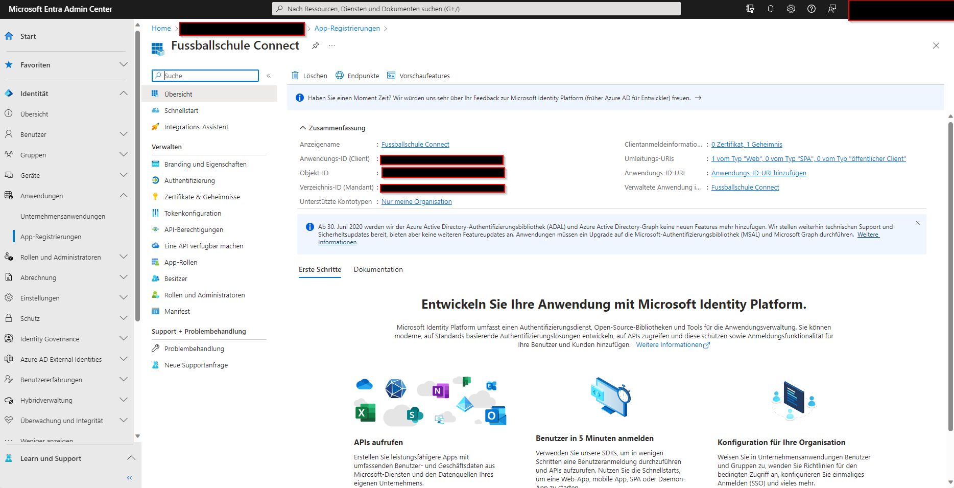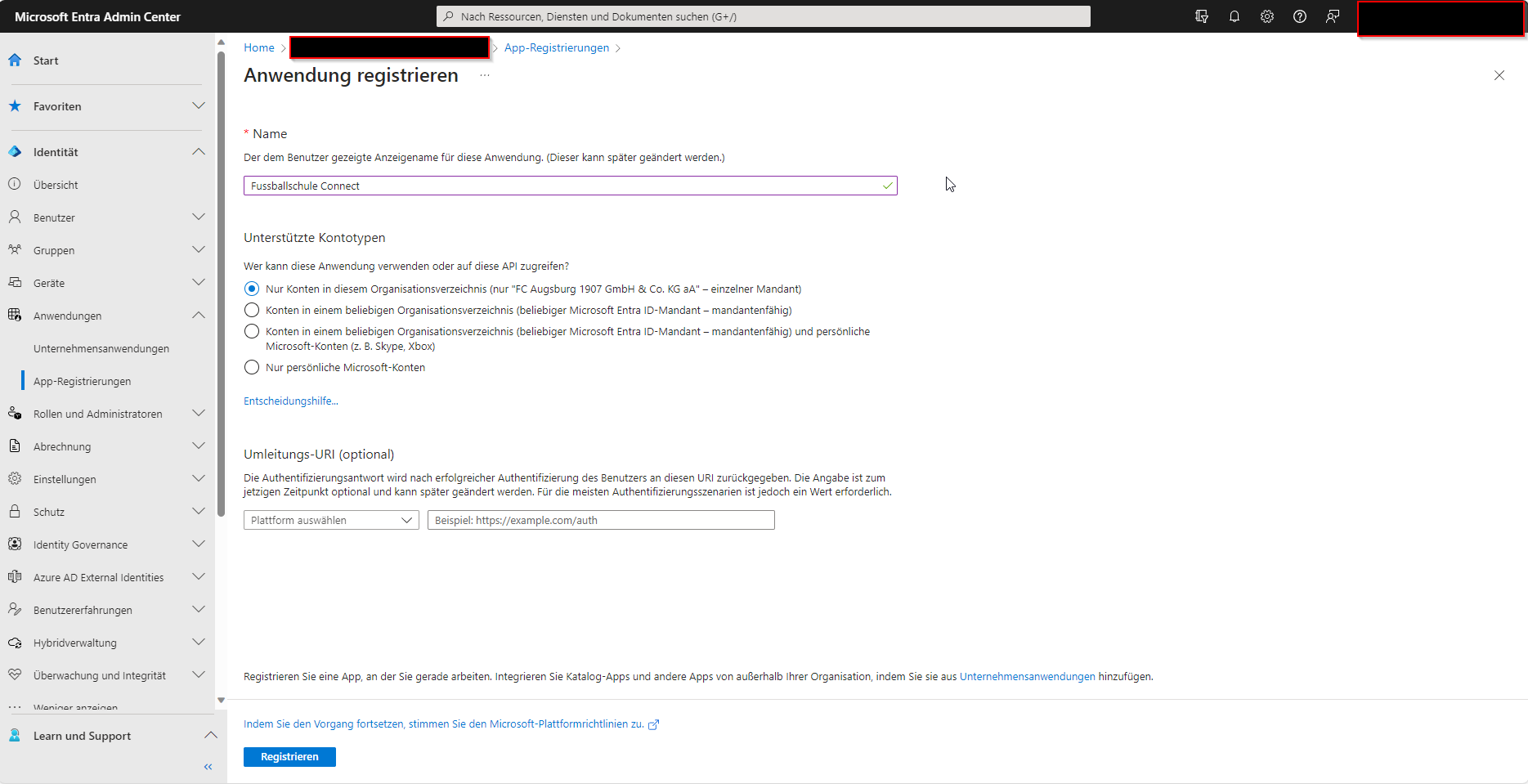Schritt 1: Eine App innerhalb des Tenants registrieren