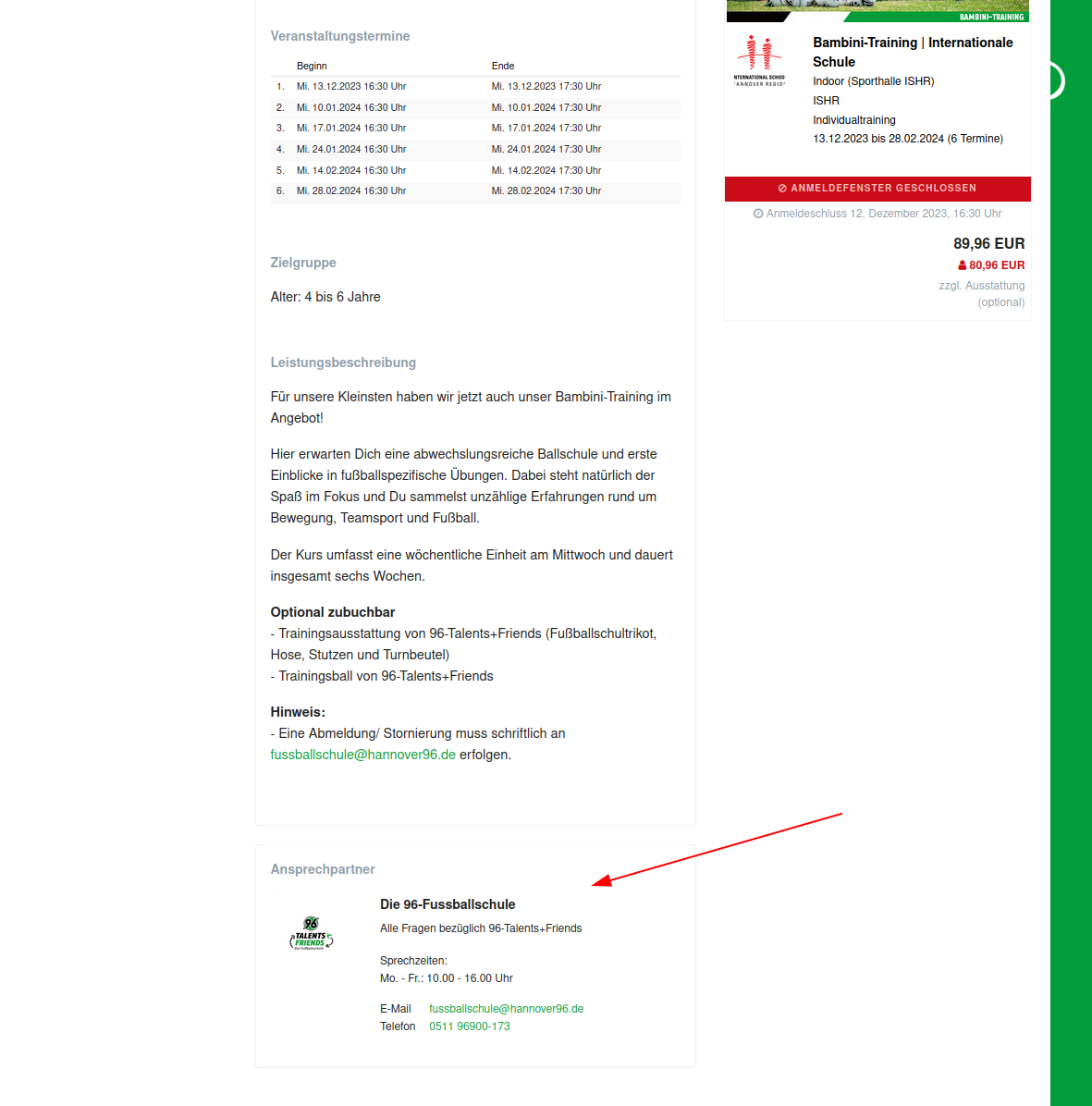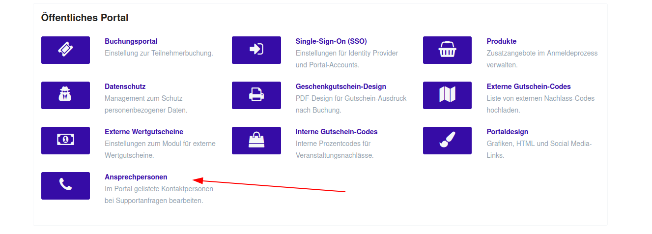 Kontaktmöglichkeiten und Ansprechpersonen im Buchungsportal anzeigen
