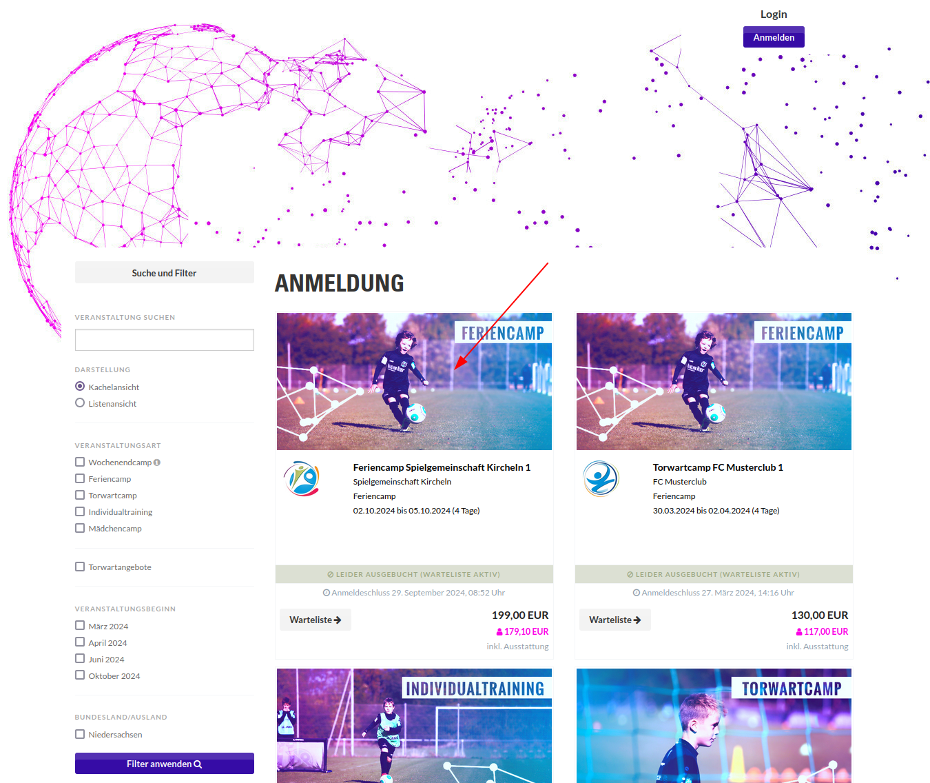 Tipp: Im Managementbereich lassen sich die Featured-Events auch über die Seitenleiste filtern.