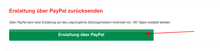 Wenn eine Online-Zahlung hinterlegt ist (in diesem Beispiel nicht der Fall, hier hatten wir eine SEPA-Lastschrift), kann die Zahlung durch Klick auf die Erstattung in der oben aufgeführten Tabelle und dann über den großen Button "Erstattung per XY auslösen" per Schnittstelle an den jeweiligen Zahlungsdienstleister zurückgezahlt werden.