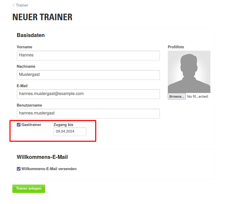 Gasttrainer mit automatischen Ablaufdatum anlegen