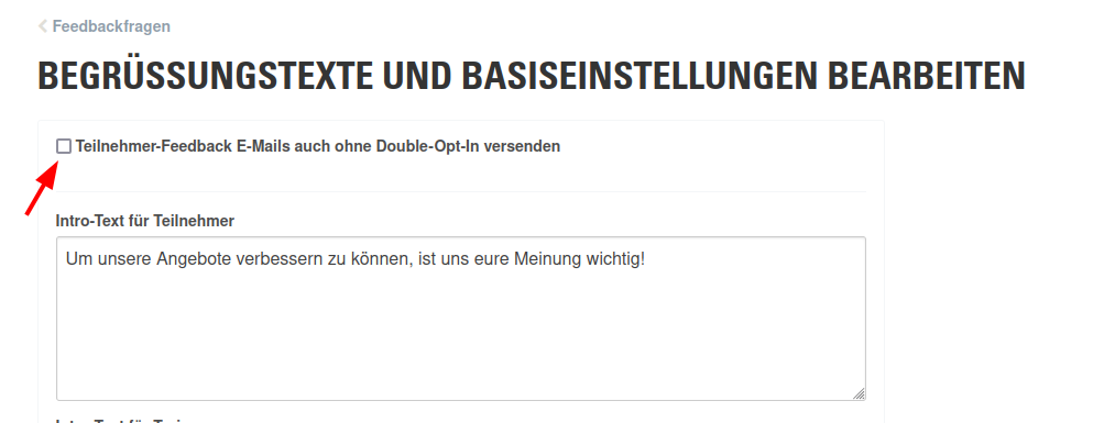 Feedback-E-Mails werden nur an Teilnehmer mit bestätigtem Double-Opt-In versendet, aber kein Teilnehmer hat dies erteilt oder die Teilnehmer wurden importiert/händisch angelegt. Diese Einstellung kann überprüft werden, in dem unter Einstellungen > Feedback > Begrüßungstexte und Basiseinstellungen bearbeiten die Option Teilnehmer-Feedback E-Mails auch ohne Double-Opt-In versenden betrachtet wird: