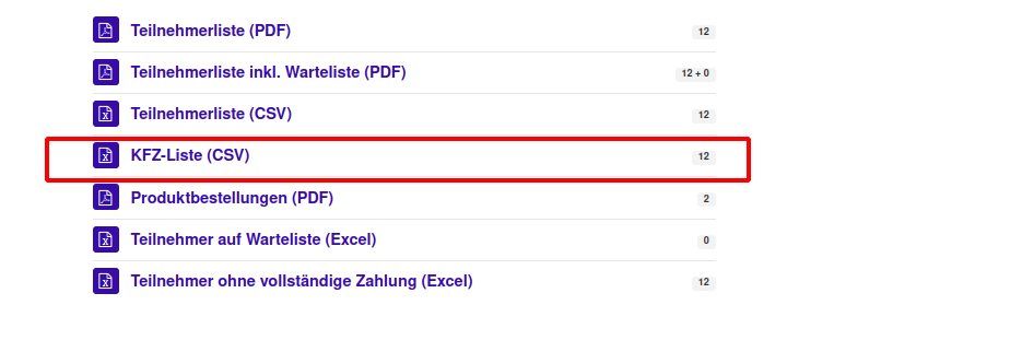 Anschließend lässt sich auch im Management-Bereich ein Export der Kennzeichen als CSV-Datei erzeugen: