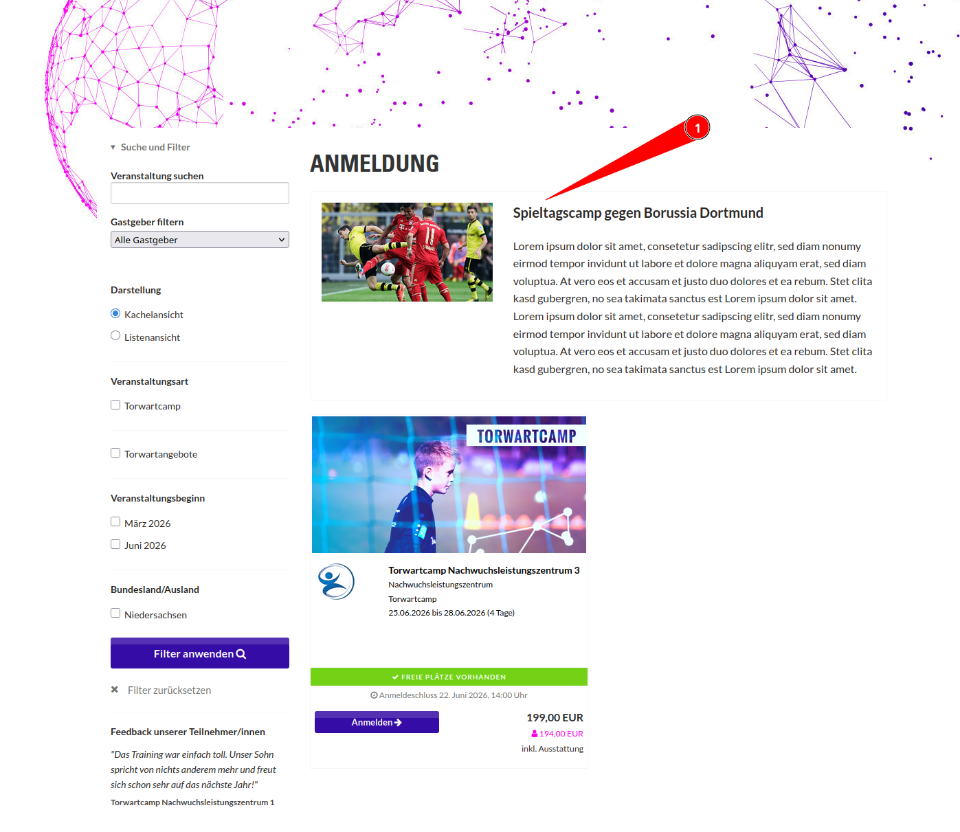 - Spieltagscamp (ein Bundle pro Spieltag)