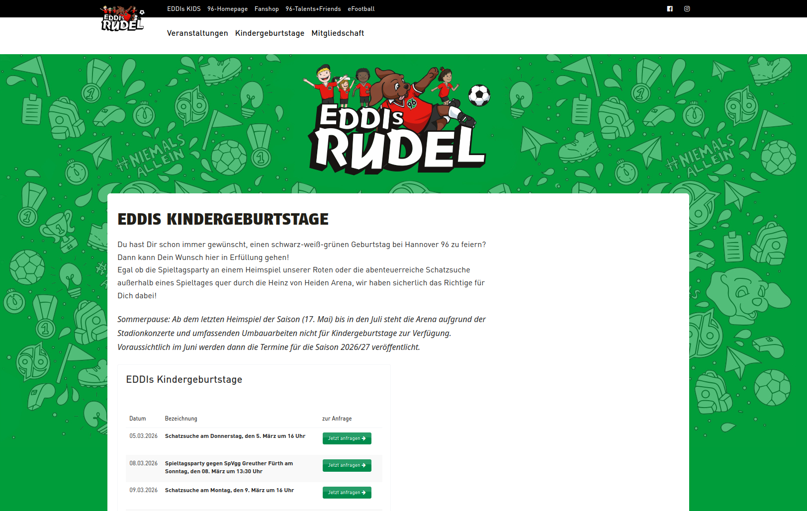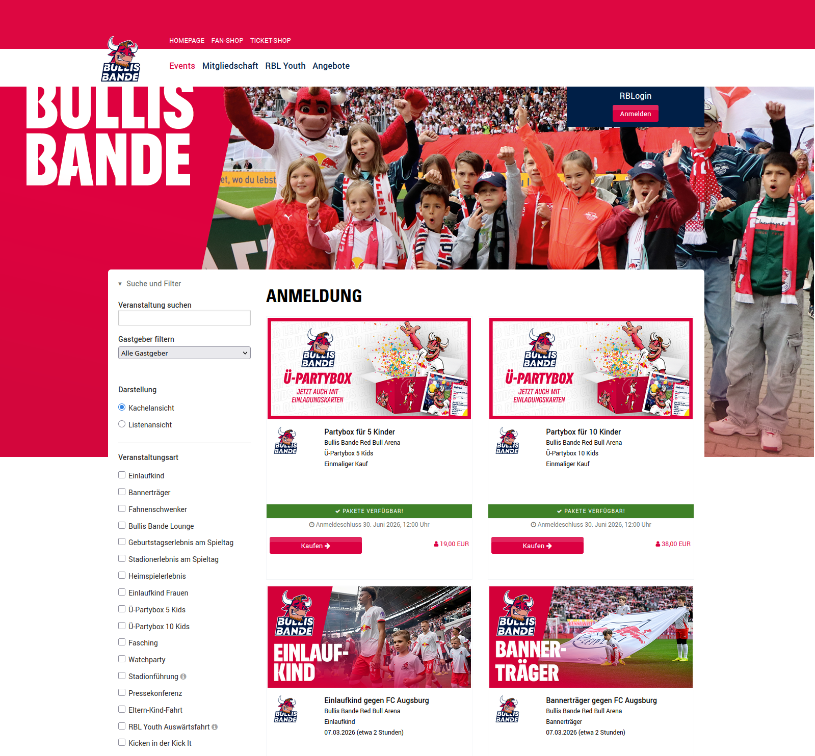Abteilungen und Event-Angebote der Muttervereine als zusätzliche Installationen