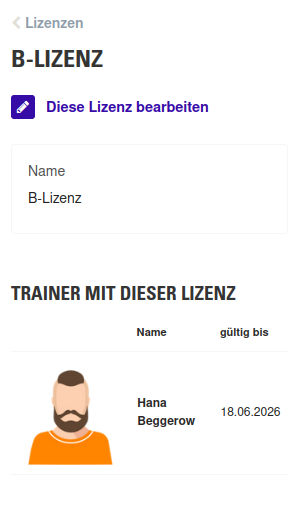 Tipp: Klickt auf eine Lizenz, um eine Übersicht der Trainer mit aktiver Lizenzzuordnung zu erhalten: