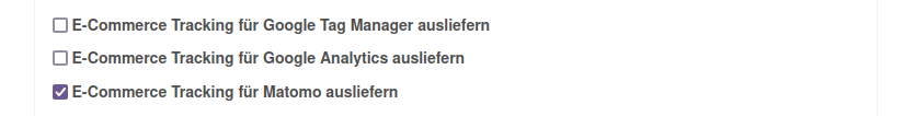 FSC kann weiterhin E-Commerce Tracking Code automatisch ausliefern, damit erfolgreiche Buchungen im Portal getrackt werden können. Diese Einstellungen finden sich weiter unten: