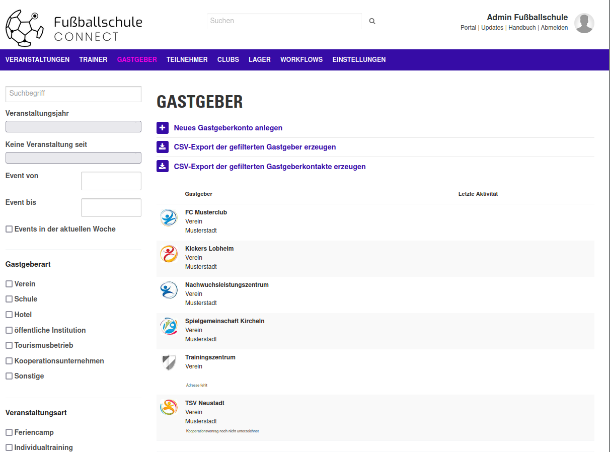 Jeder Partner, bei dem ihr mit euren Veranstaltungen als Lokalität gastiert, sollte als Gastgeber mit einem eigenen Profil angelegt werden: