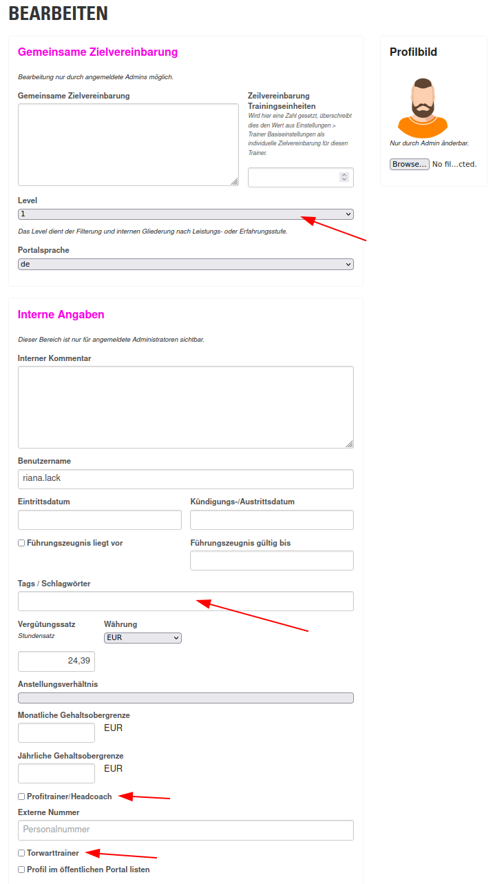 Trainer-Segmentierung durch unterschiedliche Möglichkeiten (Proficoach, Level, Tags)
