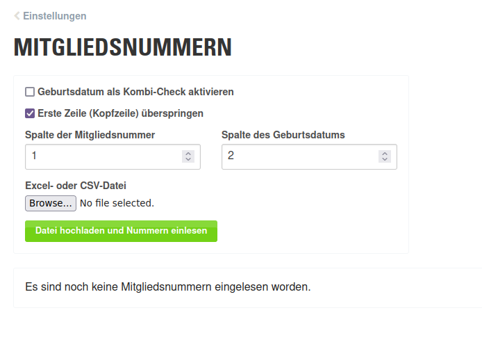 Tipp: Nummern können als Delta eingelesen werden, d.h. es muss nicht jedes Mal die komplette Liste neu importiert werden, sondern nur die neuen Mitgliedsnummern.