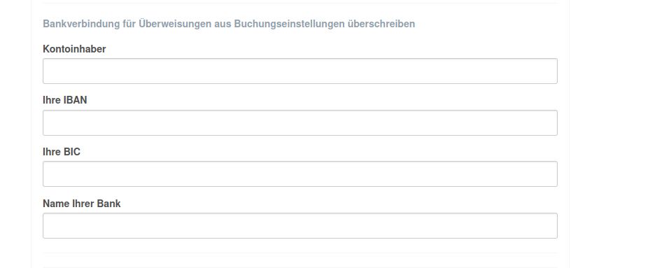 Wenn ihr als Zahlungsmethode Überweisungen nutzt, könnt ihr unter Einstellungen > Veranstaltungsart pro Veranstaltungsart gesonderte Kontoverbindungen eintragen: